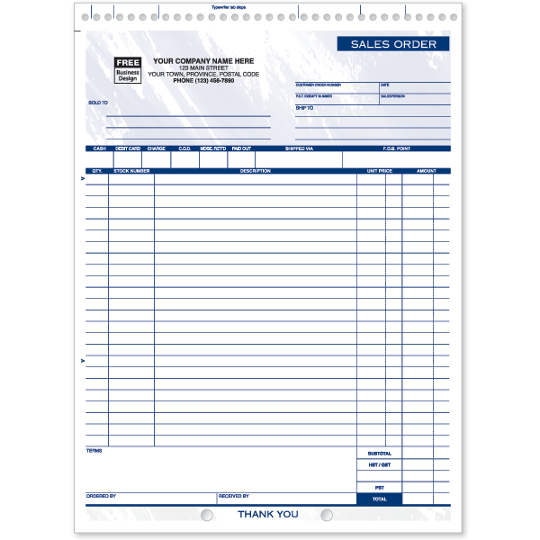 W53 - Custom Sales Orders | Sales Order Forms Printing